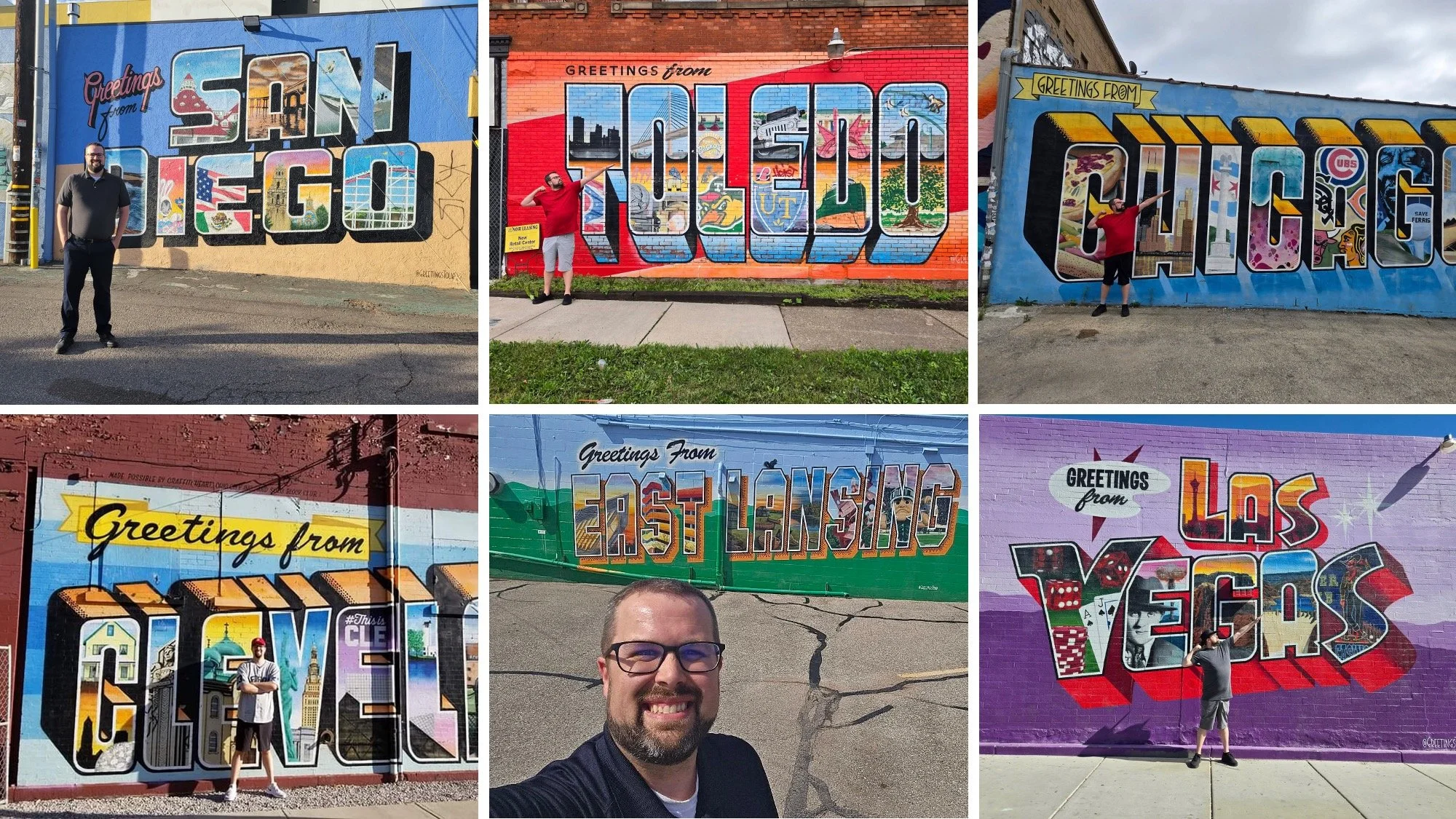 “I travel all over the US going to various sporting events that includes Hockey, Baseball, Football and Basketball. I also seek out murals and became hooked on the Greetings Tour works when I saw my first one in Toledo, Ohio in 2020. I am such a huge fan of their works and always look forward to seeing my next Greetings From mural.